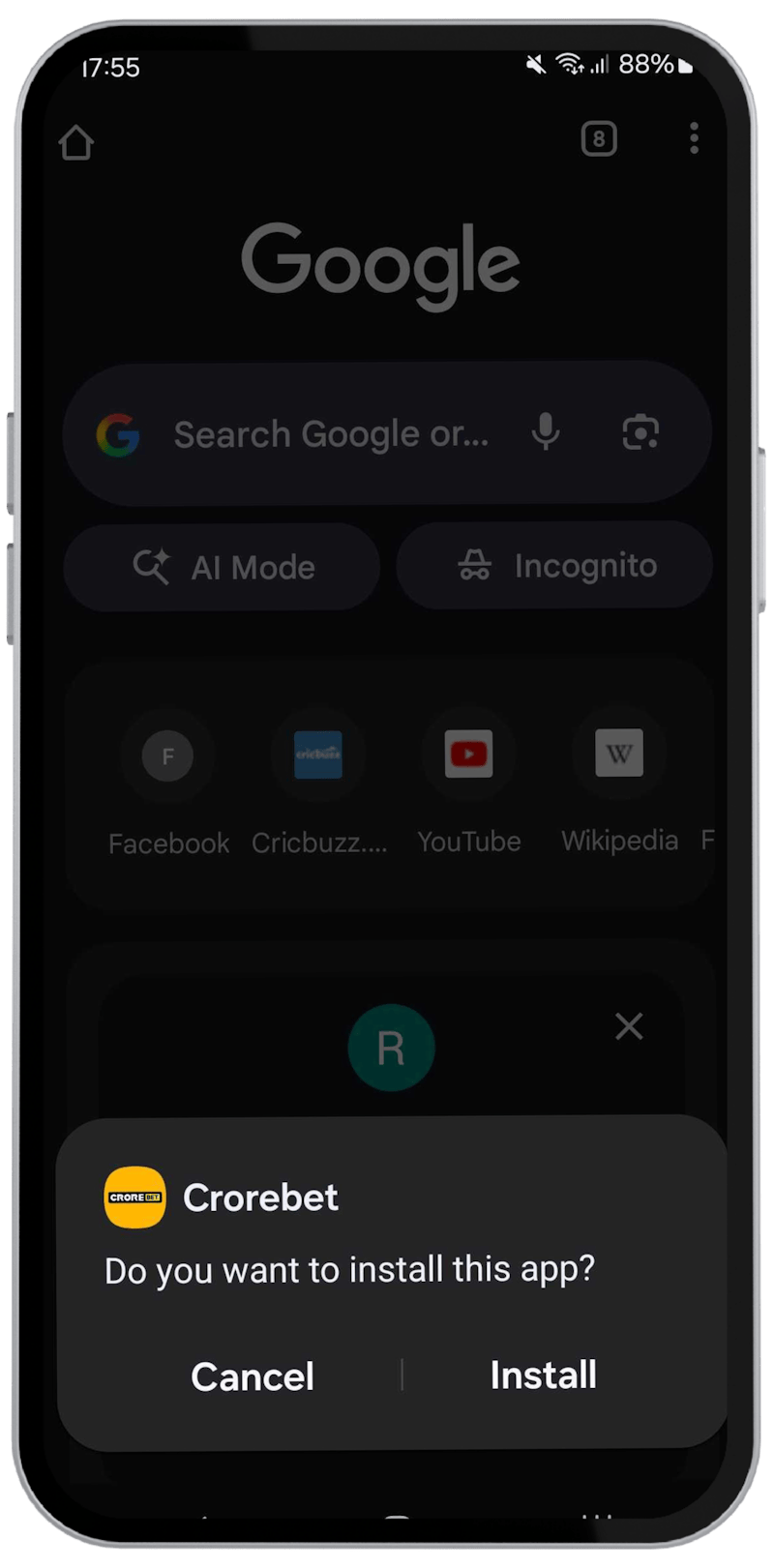 Here’s how you can install the Crore Bet app on your phone.