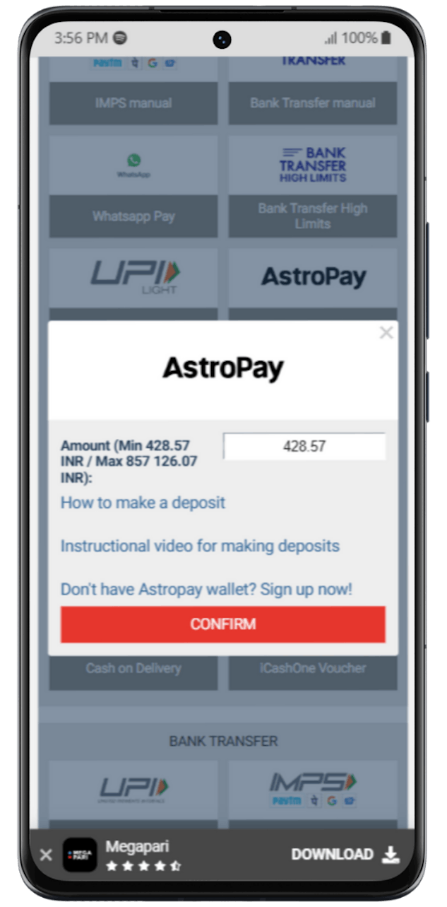 What's even better is that the Indian bookmaker offers a wide range of convenient payment options for both deposits and withdrawals, including AstroPay, making it easier for bettors to move funds in and out.