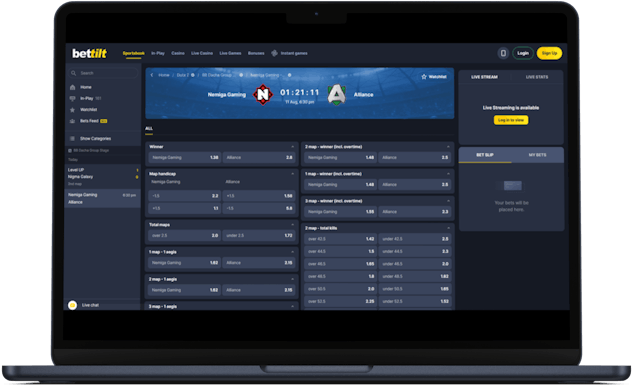 Bettilt has a very well-equipped sportsbook with a lot of Dota 2 betting markets as well as some added features like the Bets Feed.