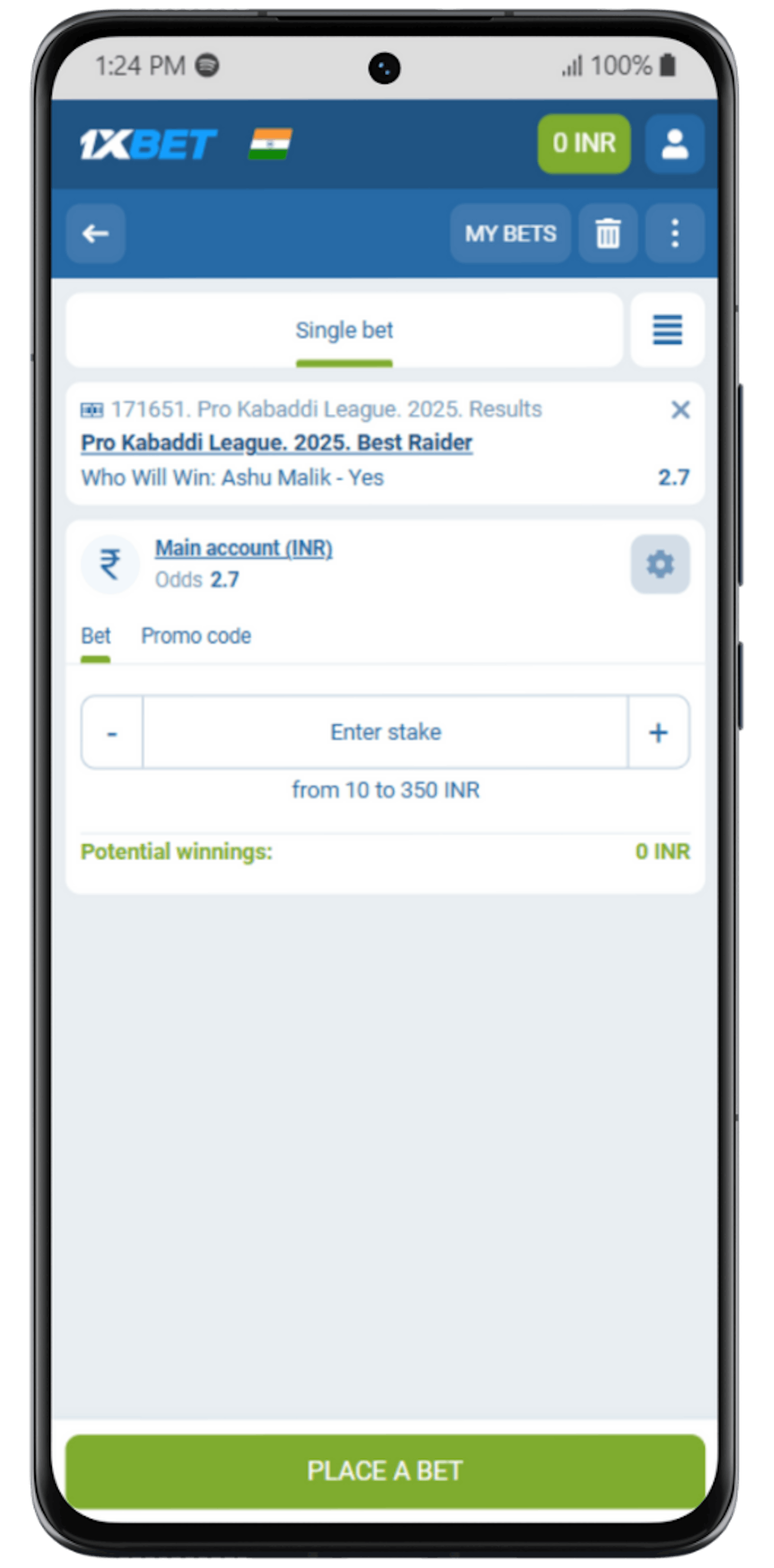 This is the important step: making your first bet. Go to the kabaddi section on the sportsbook and browse various events to place your bets. If you want to wager on the PKL 2025 season, click on the league and choose a fixture that you find interesting.