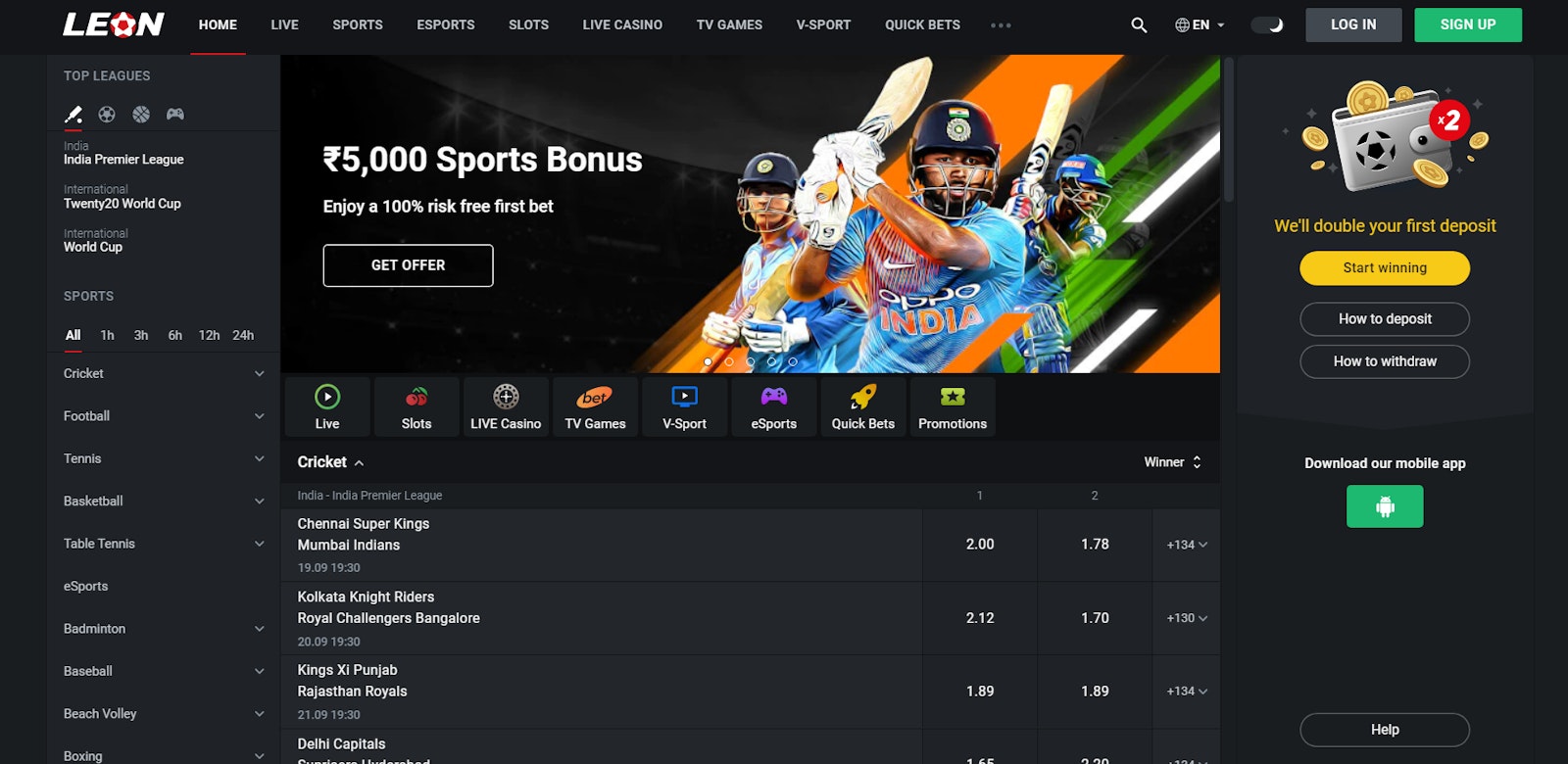 LeonBet is another comparatively newer sportsbook that has created a lot of buzz in the Indian betting market. That’s because LeonBet not only features a very hassle-free and user-friendly website but also happens to have a great mobile betting experience.