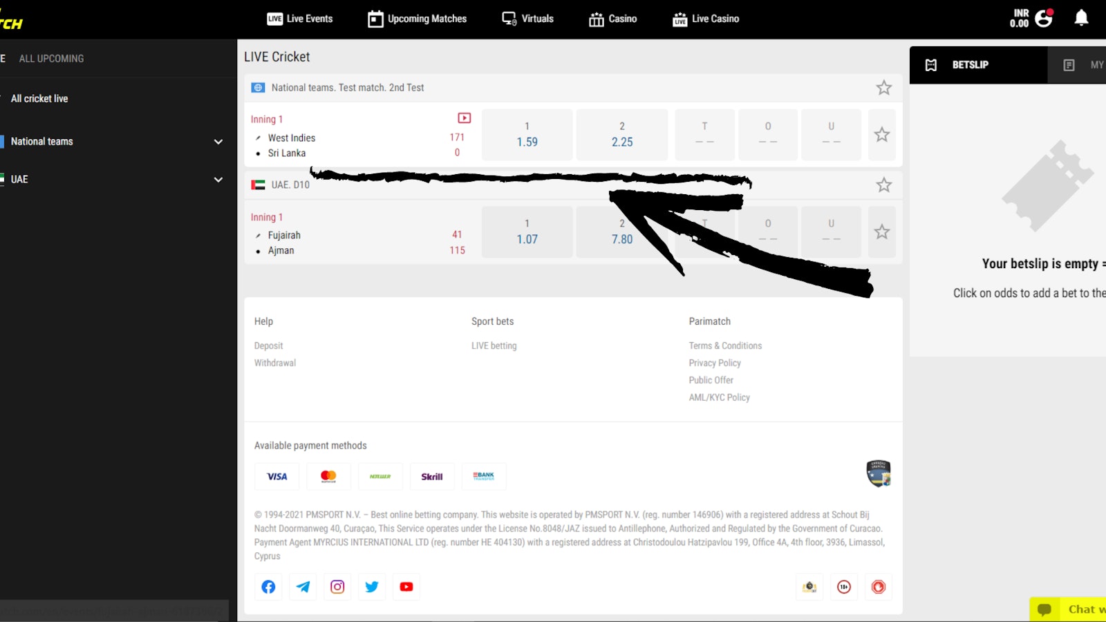 To illustrate the steps of online betting, we have taken the example of Parimatch. You can follow the steps as well as reference the screenshots to understand the process.