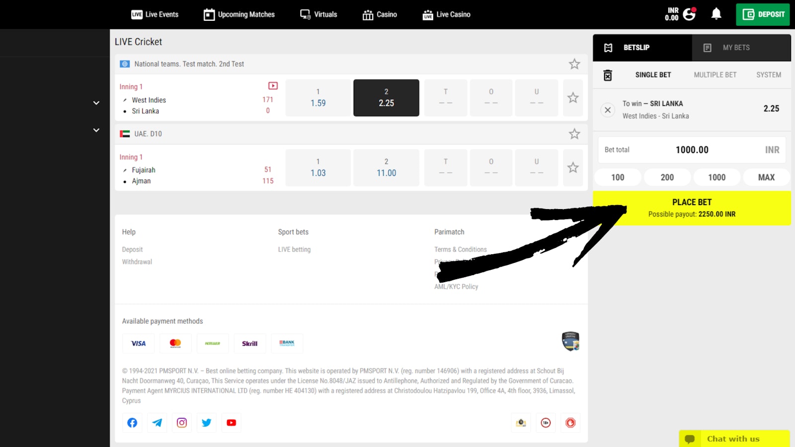 Let’s say that you place a bet with ₹1,000 on an odd of 2.75. Now, if you win this particular bet, you will win 2.75 times what you originally bet. This means that you will win a total of ₹2,750 for the bet you placed!
