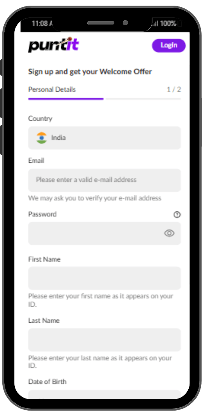 Registering with Puntit is simple: just complete a form with your personal information and confirm your email address.