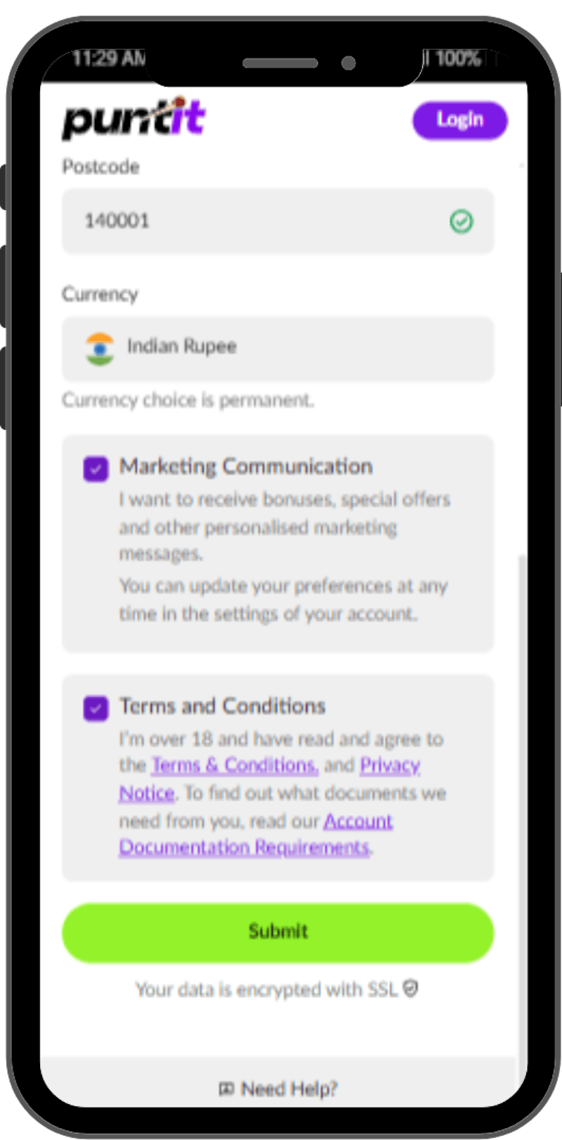 No. You can avail of Puntit's welcome bonus offer without using a promo code. The current signup offer from Puntit lets you access a 100% deposit match of up to ₹20,000 in bonus funds.