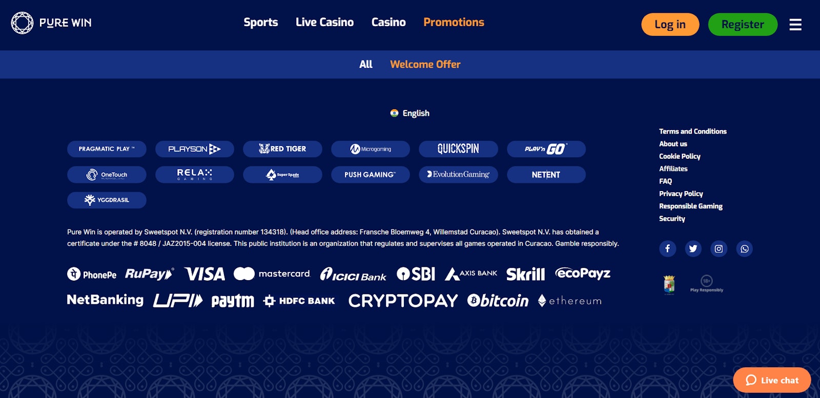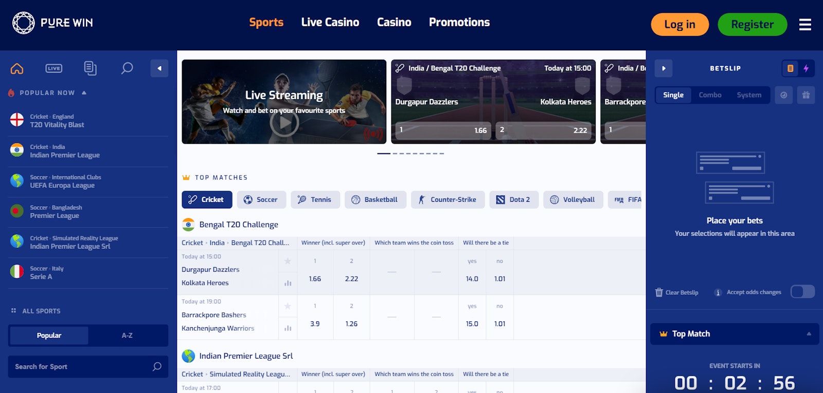 The Pure Win Welcome Bonus is a treat for both sports betting players as well as live casino fans. With the Pure Win Welcome Bonus, new players can get a bonus of 100% up to Rs. 10,000 for sports betting as well as Rs. 1,000 in live casino free bets!